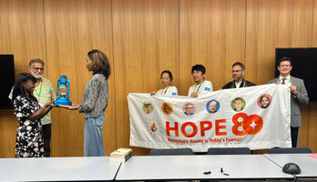 We spraken met parlementslid Calum Miller en andere leden van het parlement, waaronder een inspirerende ontmoeting tussen Tushar en Labour-parlementslid Jeremy Corbyn. Diepe dank aan Jennifer, Hidetoshi en Tushar voor jullie krachtige toespraken—jullie vertegenwoordigen HOPE 80 met passie en gratie!