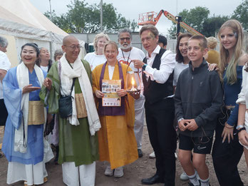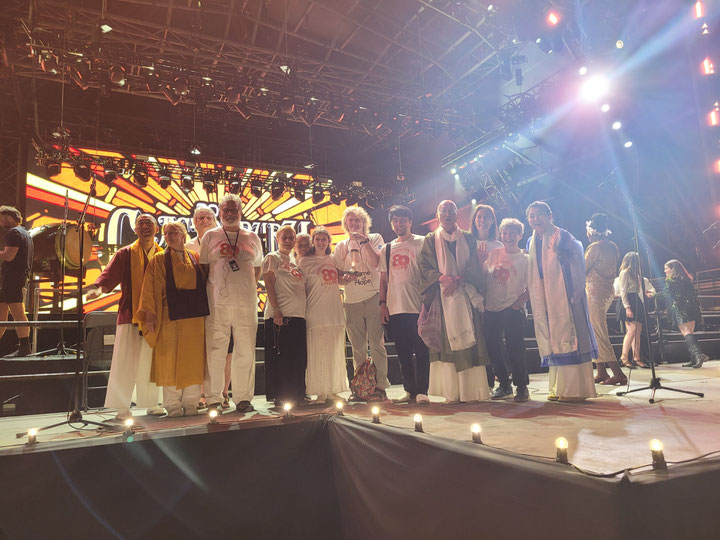 Ondertussen vulde de prachtige muziek van Aminadabu het Park Stage, wat alle luisteraars verrukte en onze ervaring op deze legendarische bijeenkomst verder verrijkte. Bij kings medeaw werd net als vorige jaar de "Flame of Hope peace meditation" aangeboden, evenals een 'peace talk' waar onze Israeli-Palestina gezamenlijke vredesdelegatie was uitgenodigd om te spreken.