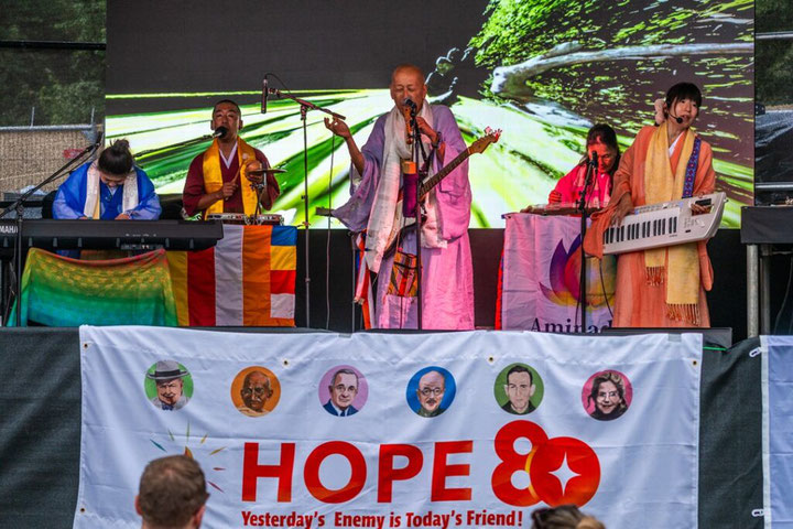 "Moge geen kinderen meer lijden door oorlogen, vanuit deze diepe wens is de Flame of Hope is gecreëerd en waarom we Hope 80 vredesproject uitvoeren." (Rev. Ryokyu Endo)